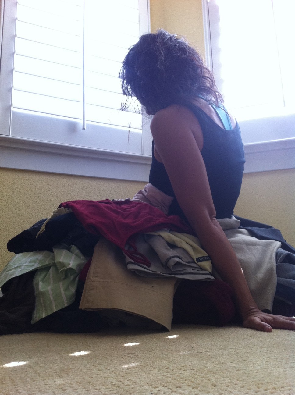 This past weekend, MMM brought a big box up to our bedroom.  It contained clothing we had packed away into boxes way back in June, just before our trip to Canada, as we rented our house this past summer and wanted to clear out some of the clutter for our incoming tenants.  As I started sorting through this box to put things away, I suddenly felt defeated.  With clothing piled high all around me, clothing I hadn’t even looked at in months, I felt the excess of my younger years coming back to haunt me.