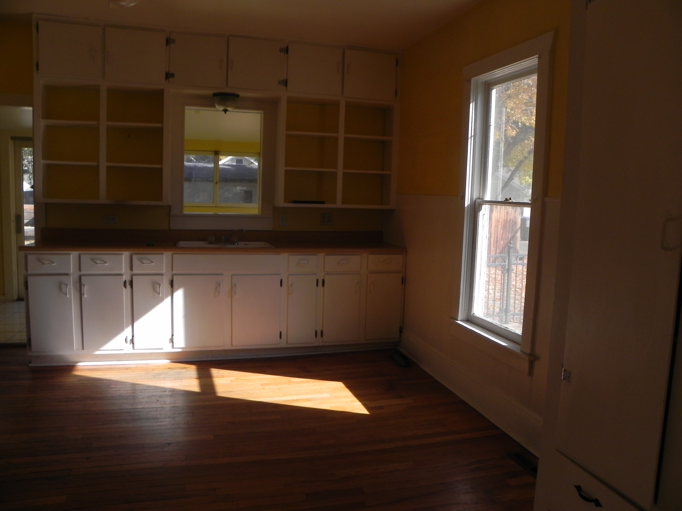 The third view of the kitchen - empty space near the windowWe decided to keep the old pantry and just refurbish it, and the empty space was perfect for this nicer fridge.