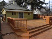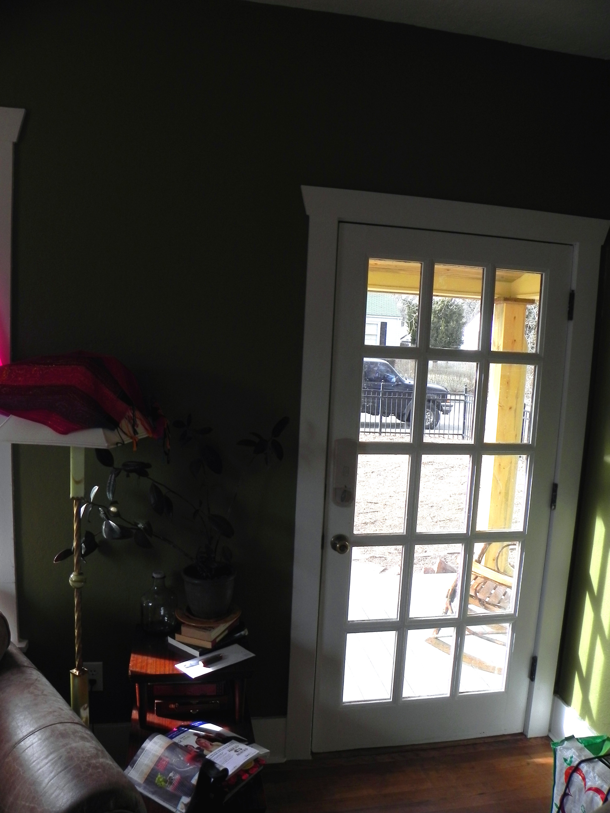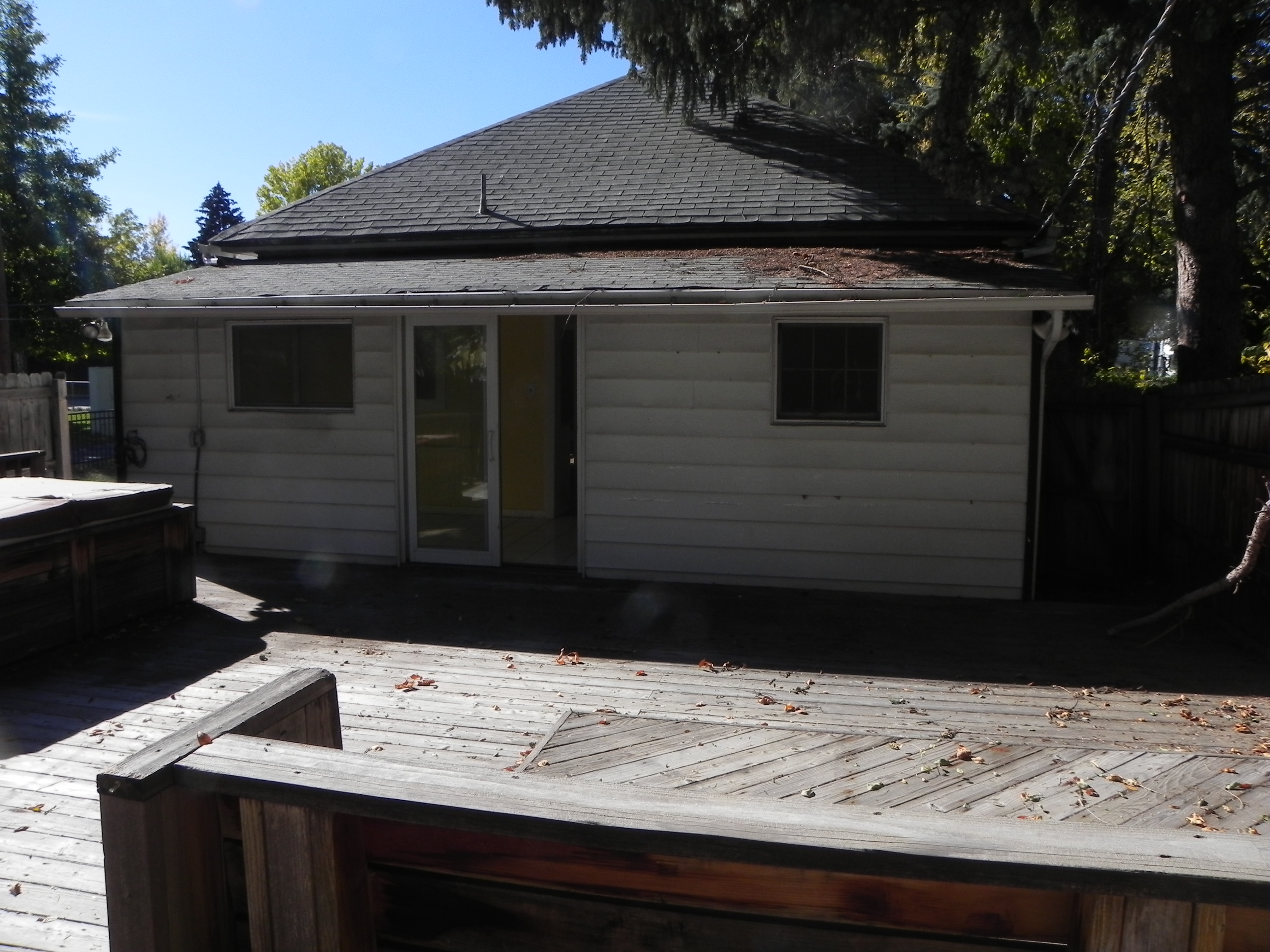 View of back room and deckMore random wires removed, broken hot tub sold on Craigslist (!), deck stained, and of course house painted