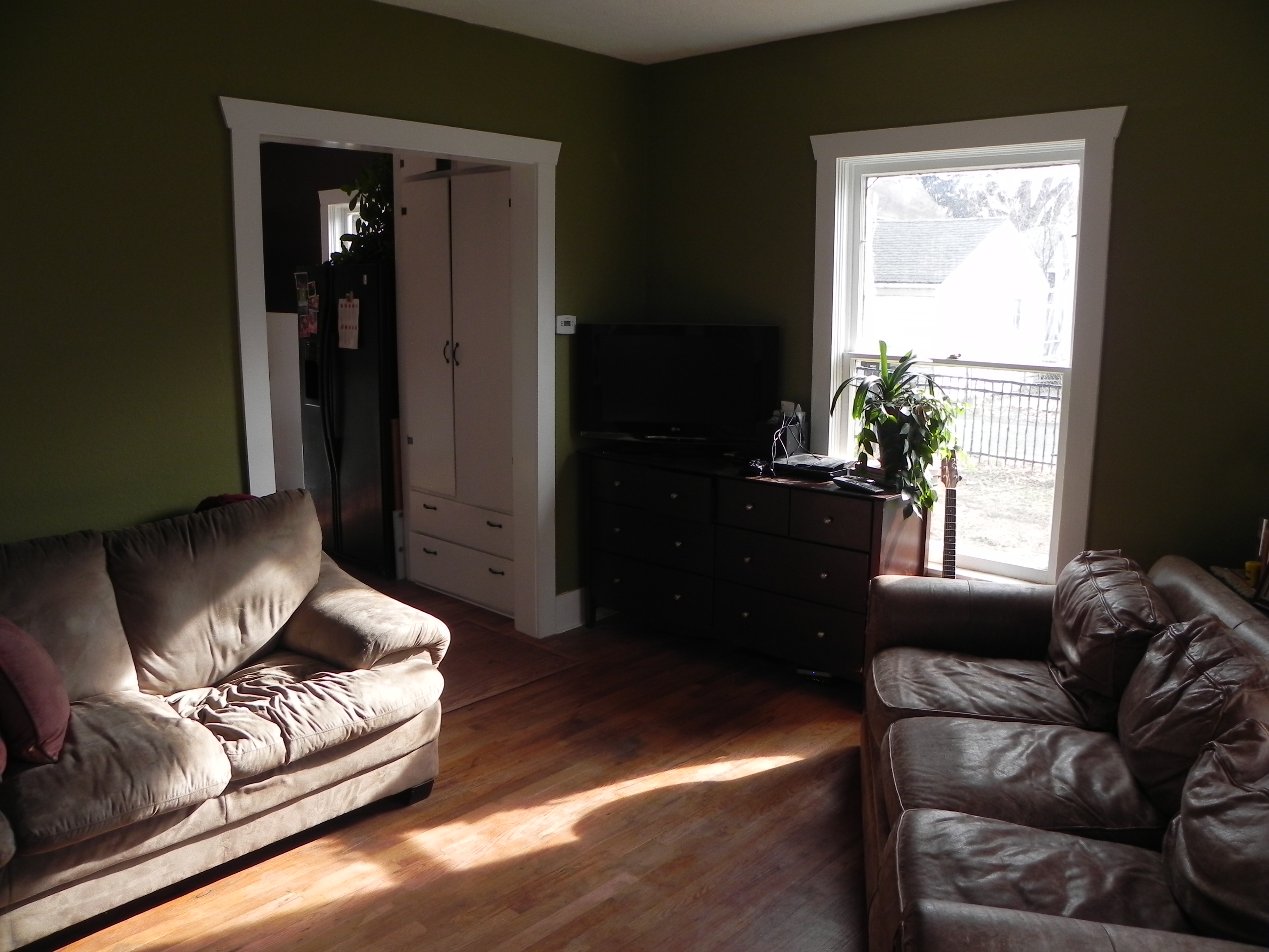 Living room, before. Doesn't look that bad in the picture, although it had a cracked/sloped doorway to kitchenNew wider doorway with nicer trim - and straightened floors. (my friend the painter also sanded down and refinished all the wood floors)