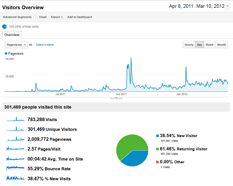 What this may tell the uninformed glancer is that you have a dedicated community who are all reading a lot of pages, revisiting pages to comment, and so on. And it does.