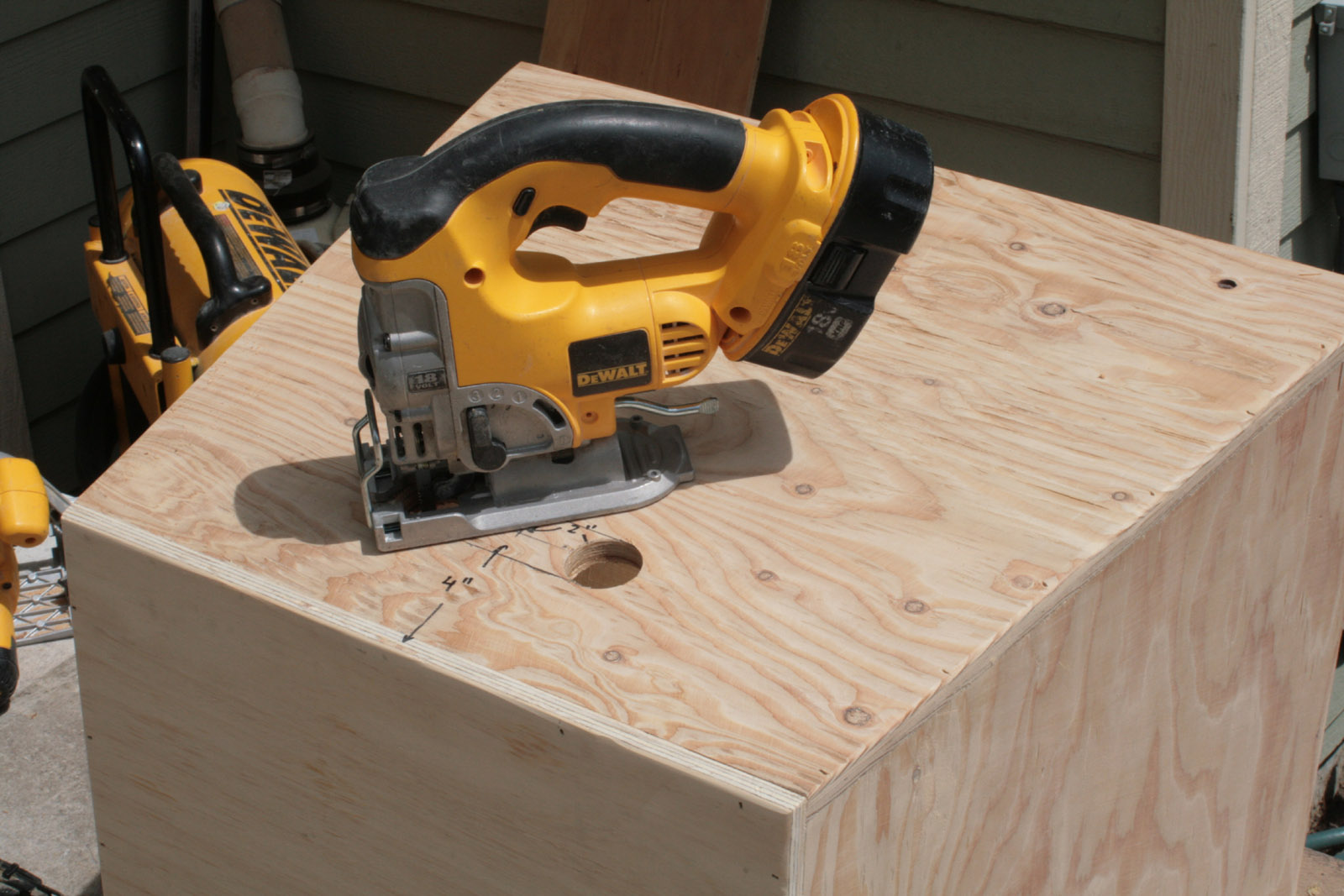 In the pictures, I made this box out of slightly thinner 5/8″ stuff, since it happened to be in my shed. But the box is even stronger and the material is a bit easier to attach together if you use 3/4.