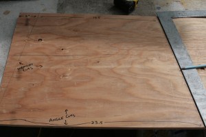 Next, you will be sketching trapezoid shapes on your new strip of wood. 23.5 inches at the base, 17.5 inches at the top: