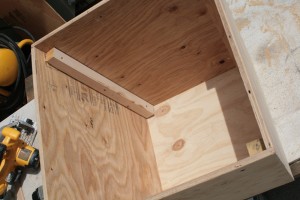 In what direction are you screwing the interior supports? In the picture, it looks like you’re screwing from the inside out… but the plywood is pretty thin, so you’d probably only have a bit of the tapered end of the screw in. Wouldn’t it make more sense to screw into them from the outside?