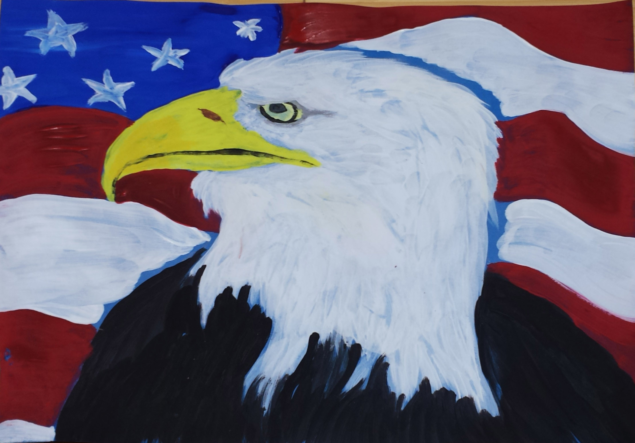 "Badass Mustachian Eagle of Freedom" by M. Mustache. 2013, 8.5"x11", Kid paint on scrap paper