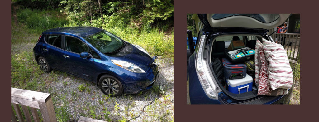 The Stash-inlaws (in Ottawa, Canada) also bought a Leaf after experiencing ours. Their Leaf easily navigates the rough dirt trail to their cottage in Quebec, carrying five people and their gear.