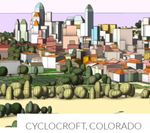 Someone sent me a beautiful 3-D mockup of a fictional, car-free city of 50,000 people, set in the scenic nook of land* between Boulder, Colorado and Longmont, where I live. It came complete with street plans, detailed descriptions and dozens of cool photos, both real and computer-generated, showing how it would feel to live there. They called it Cyclocroft, in honor of the generally pro-bike stance of Mustachian culture.