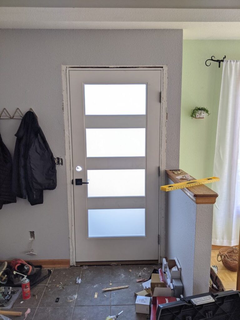 We’ve already gotten straight into the renovations with a symbolic first step: a new front door.