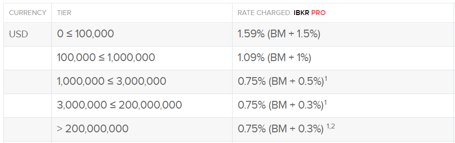 (Interactive Broker Margin rates as of Jan 2021. Note: you can always check the current rates on their website here)