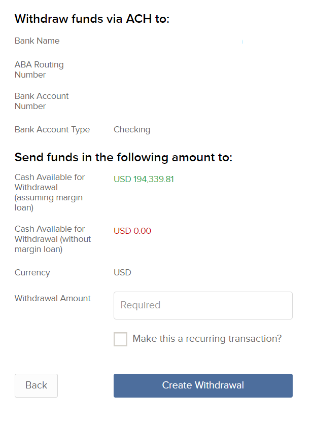 After that I was able to withdraw cash using the margin loan feature. The brokerage lets me go all the way up to 50%, but I kept mine to a lower percentage.