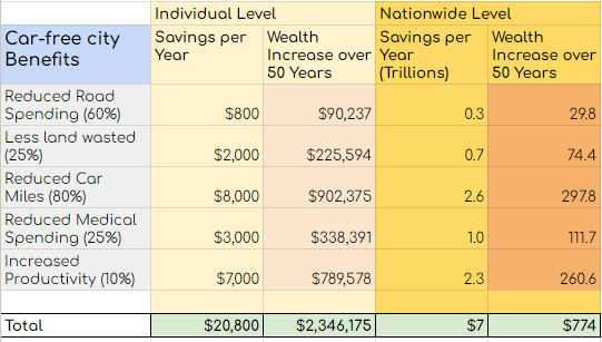On a nationwide scale, this would boost the wealth of the United States by about seven trillion dollars per year, which would compound into about 770 trillion over the next five decades.