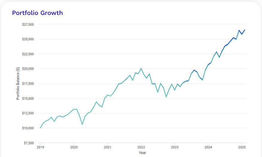 S&P returns (including dividends) since 2019, graph by the excellent portfolio visualizer website.